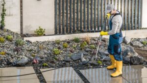 - Preparation: The area is prepared by removing any loose debris and furniture, ensuring a clear space for the cleaning process.